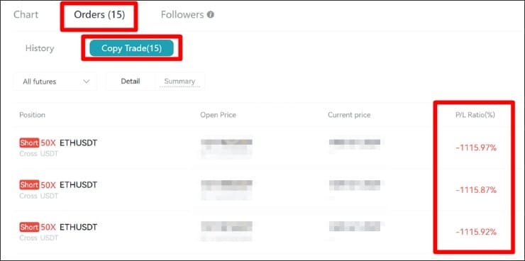 Even WonYotti, who reportedly earned hundreds of billions, never had a 100% win rate — so it’s completely normal to see some negative trades in between. In fact, this trader’s performance looks quite strong overall. Compared to copy traders who post thousands of percent in returns while holding multiple losing positions in the “Copy Trade (Current Copy Trading Orders)” tab, this person is likely a much more skilled and genuine trader.